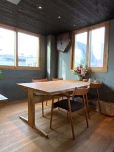 飲食店「和ごころ」さんに椅子を納品させていただきました。移転前の店舗から移動したけやきのカウンター、天然木のなりをきれいに生かしたオーダーメイドのテーブルや木製建具など、素材の力を引き出す木づかいになんとも魅力を感じる空間です。壁面にオブジェのように飾られた一枚板。なんと換気口のカバーです。穴のある一枚板を惜しげなくこの用途に…。トイレでも納まりに感嘆のため息がいくつも。お料理はもちろん、建築の魅力も楽しめるお店ですので、お近くの方はぜひ尋ねてみてくださいね。