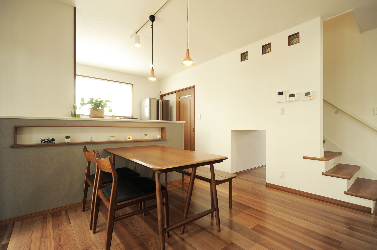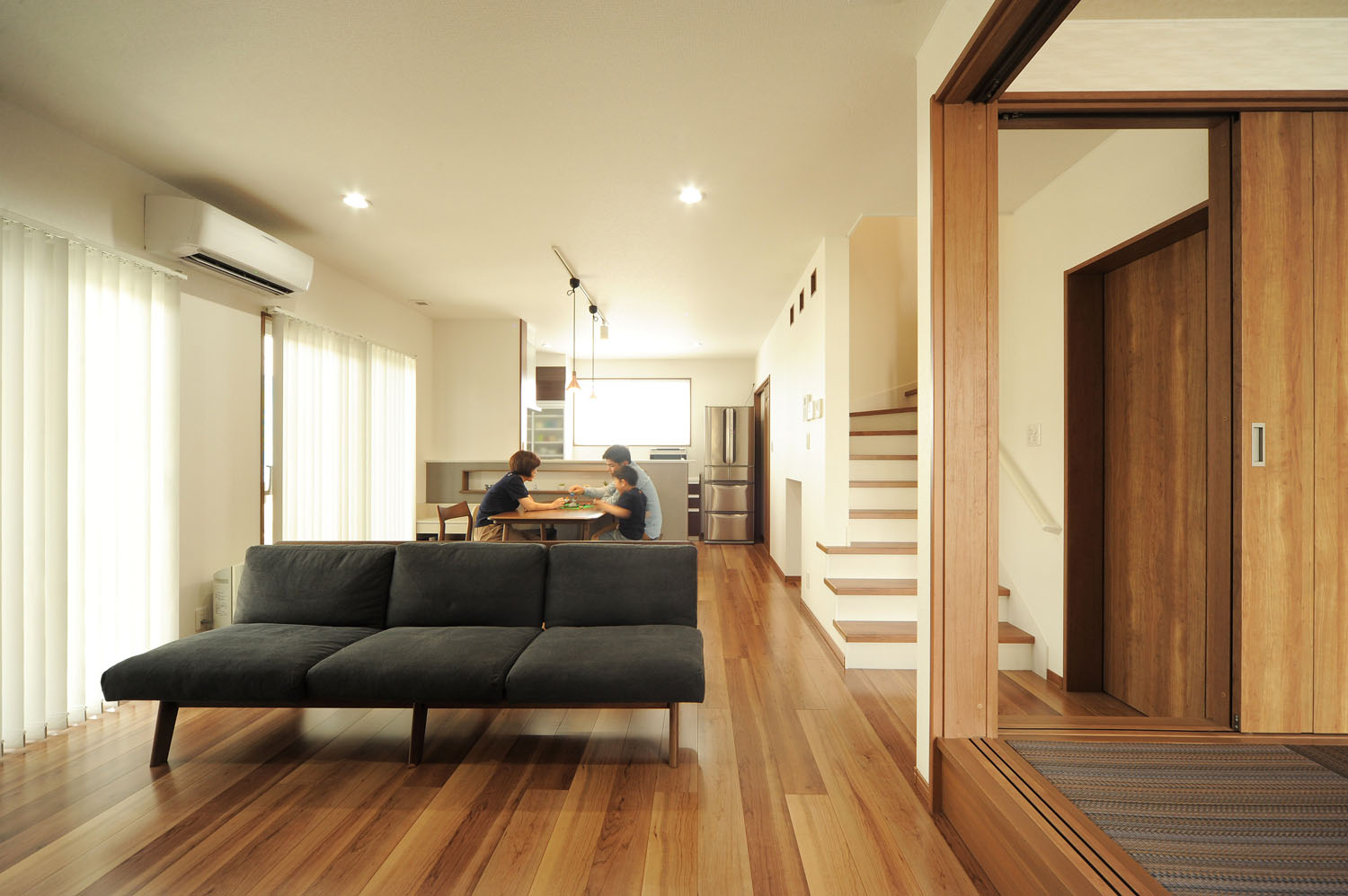 大型車の交通量が多い国道近くの住宅地に新築されたK邸。住まいづくりにあたっては、まず静音な室内環境をつくる建物の構造にこだわった。必然として気密性や断熱性は高まり、その結果、望んだ以上の静けさと同時に、ランニングコストの軽減という嬉しいおまけがついてきた。オール電化の住まいで真夏の8月の電気代は1.2万円、暑さの続いた9月でも1万円を切った。三浦建築設計の家は雪深い県南地域で冬の暖かさとコストパフォーマンスに定評がある。FPの工法を知り尽くしたキャリアのある自社大工が手がける堅牢な構造体は、何十年たっても新築時の性能が落ちることなく続くのが特徴で、OBの施主たちも驚くという。家の建築費はローンの期間を払えば済むが、光熱費はその家に住む間ずっと続いていく費用だ。その差をどう捉えるかは価値観によるが、建築費に差があったとしても、何十年か先の時点で同じ出費となるのであれば、住み心地は四季を通じて快適な室温を保つ高性能住宅に軍配が上がる。Kさん夫妻は後者を選択することで、長く続く快適を得た。