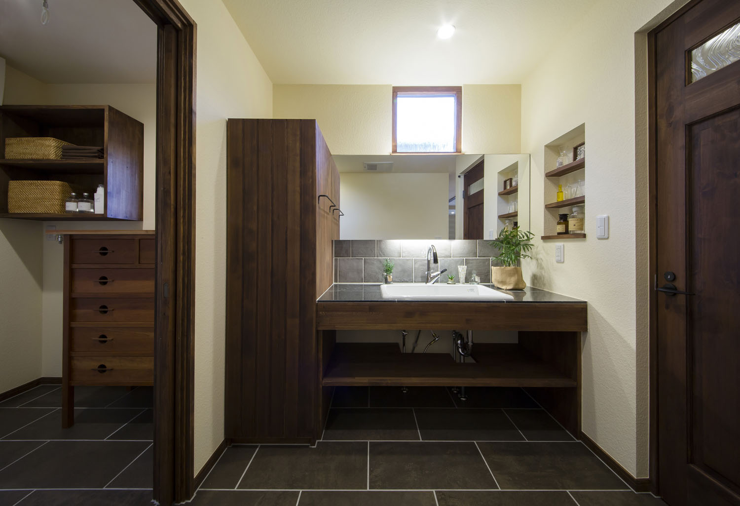 平屋暮らしの魅力は、物理的なワンフロアの利便性はもちろん、窓から庭の木々を眺める時間のような、心理的作用によるものが大きい。この「平屋暮らしが叶う木の家」では、ダイニングのスペースに大きな窓が設けられている。植栽が揺らす朝陽のもとに食卓を囲み、一日が始まることの価値は、身を置けば誰もが実感するところだ。しかし、住まいづくりでは数字で判断可能な価格や住宅性能に意識が向く一方で、選択時にプランニング力を問うことは少ない。プランの良し悪しは、日々の生活のストレスに直結する。人々が求める「後悔しない住まいづくり」とは、そうした小さなストレスが積み重ならない住まいのことだ。住む人の目線に立ち、後悔の要因となるものをどれだけ取り除けているか。また、住む人以上の目線で将来の備えに先回りできているか。性能やコストパフォーマンスを踏まえ、39坪で平屋的な暮らしが叶うこの木の家は、多くの人が持つ住まいへの潜在欲求を見据えた実力あるプランナーの知見が支えている。