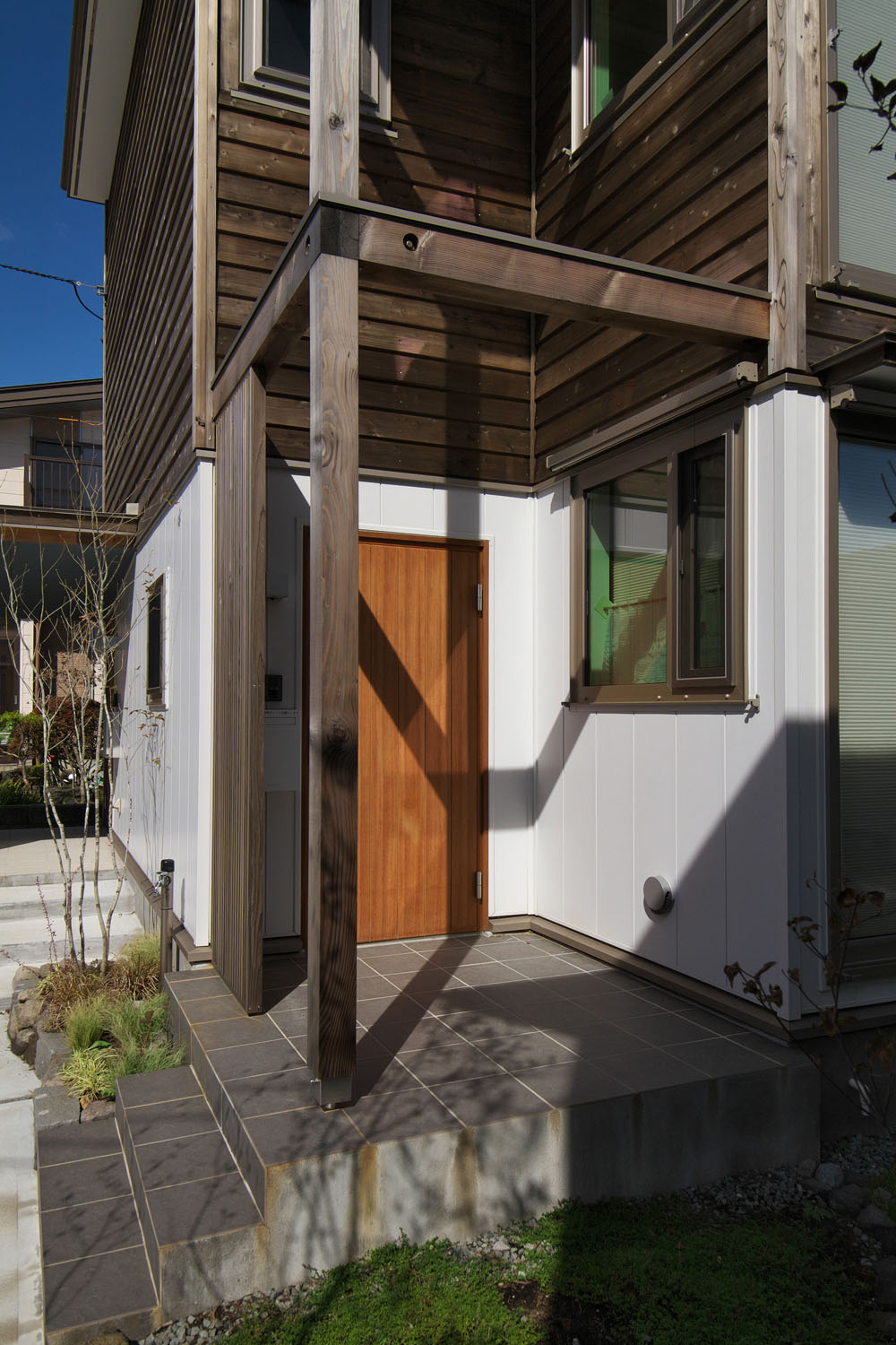 二世帯住宅は暮らし上手な住まい方。水道光熱費を折半することもできるし、冷暖房の効率も良く、お互いを頼り合うことで生き方が豊かになる。建て替えにあたって、35社もの会社を見て回ったという親世帯のSさん夫妻が最終的に選んだのはヨシの家。理由は明快だ。「他候補の住宅メーカーでは担当が一営業です。でもヨシの家ではこだわりのある社長が自ら担当してくれて、何かあれば近いのですぐに駆けつけてくれる。この信頼の差は大きいです」と奥さん。二世帯住宅ではお互いのプライバシーが気になるところだが、延べ床面積50坪で、玄関をそれぞれに持つ分離型。世帯を上下階で分ける住まい方は、生活音が気にかかるところだ。遮音を徹底することもできたが、少しの足音が聞こえるほうが一緒に暮らす安心感はありますよ、と山田社長からアドバイスが。後者を選択した今、一人で心細い日には二階に誰かが居てくれる気配が心地良く、そのことを実感している。新居で暮らして半年近くになるが、どちらの世帯も不満は見当たらないそうだ。