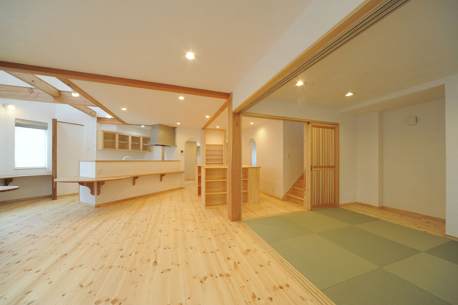 住まいづくりとは、人という生き物のための巣作り作業。「人に最も適した環境を提供する」という視点で建築に取り組む村岡組デザインは、適切な住まいの構え方によって、人が本来持つ「自然治癒力」を高めることができると考えている。そのための第一歩が揮発性有機化合物(VOC)を含む建材や、木工用ボンドを排除するシックハウス症候群対策。そして、大がかりな機械に頼らず、断熱技術や設計セオリーで目指す快適な温熱環境。健康と同時に環境にも配慮した住宅は、広く捉えると存在自体が「予防医療」となる。このK邸は、そんな哲学に共感した医療に携わる施主のための住まいだ。