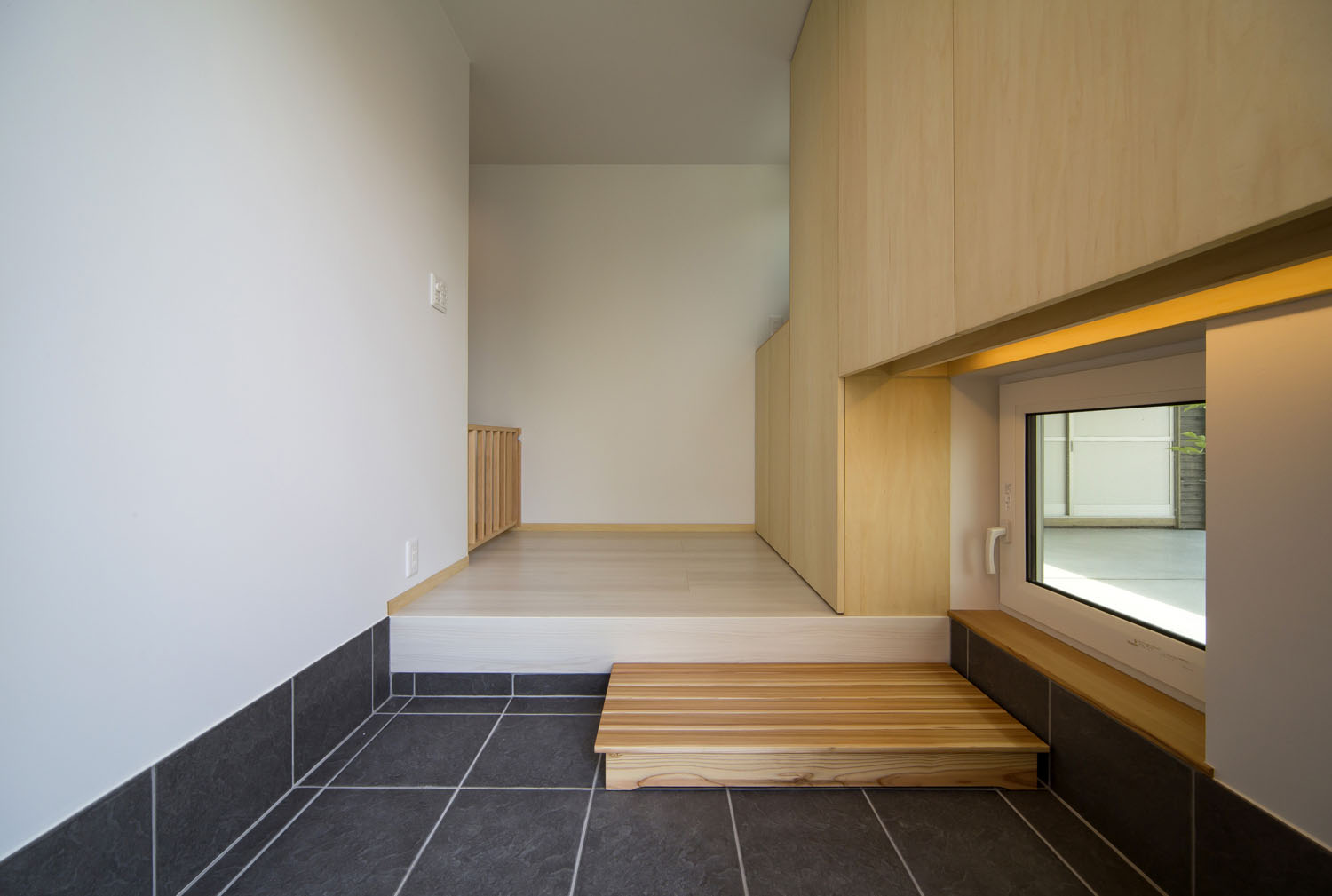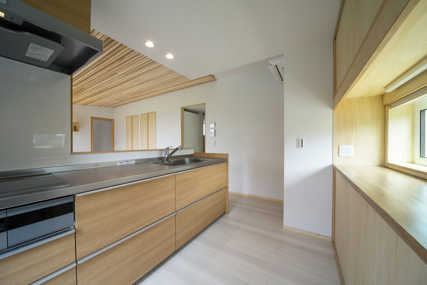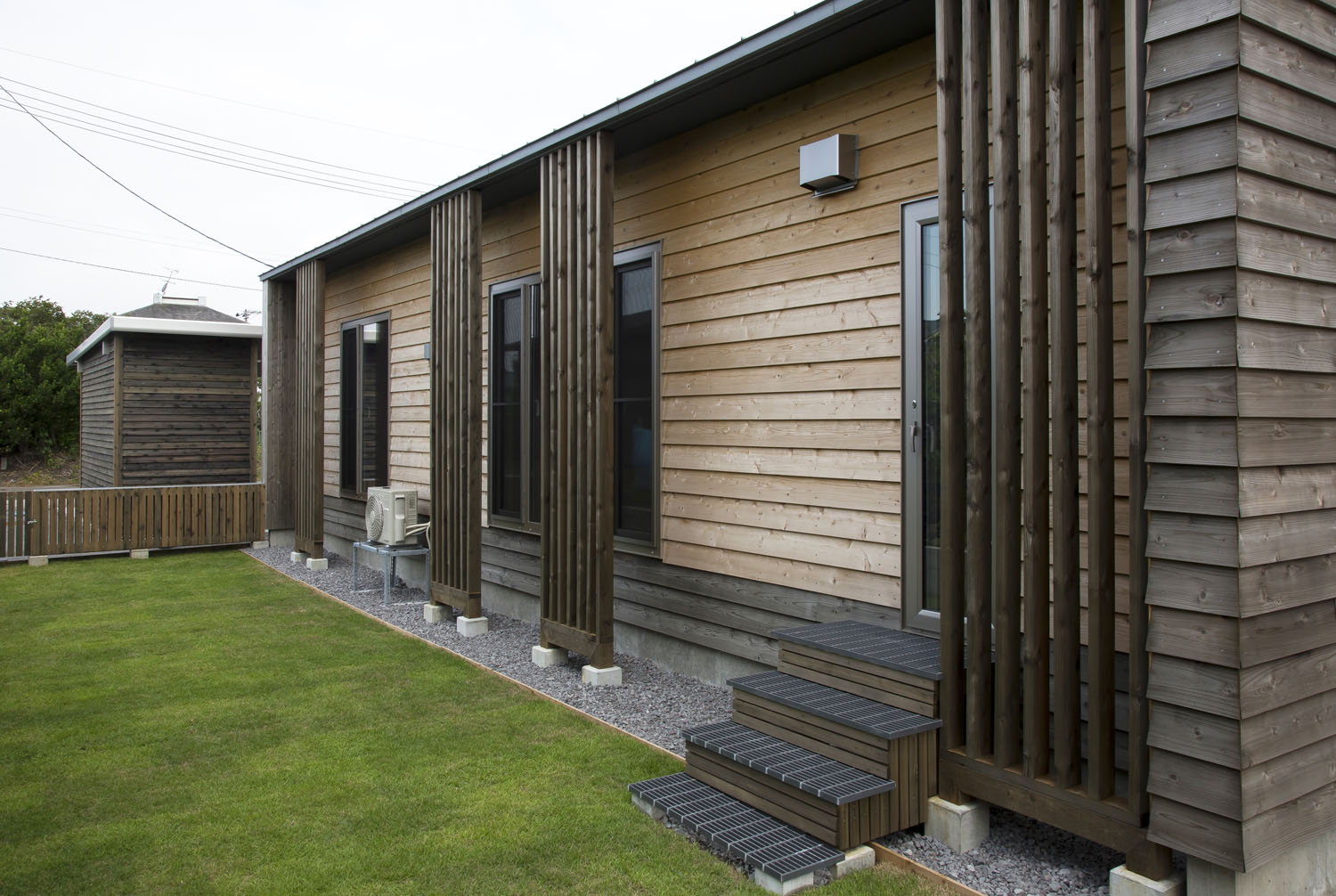 この家の魅力を説くにあたり、まずは外装に使用されている杉材の説明から始めたい。ヨシの家が杉材の使用を推奨する理由は、家に愛着を持ってもらうためだ。長く飽きずに住むためには、建物への愛情が不可欠で、長い時を経てうづくりの風貌に深まる木材は、そんな愛情の種となる、良い経年変化を日ごとに備えていく。昔はどの家の外壁にも使われていた杉板が、ほとんど見えなくなってしまったのは、天然の木や石などの建築素材に似せ、加工してつくられた住宅用建材が代替えしてきたから。それらはただ古くなり、まるごと取り替える以外に、使用継続のための手立てがない。そうした建て替えの連鎖を断ち切り、いつまでも飽きない素材で、長く暮らせる家を提供することが、住み手にとって最良であると考えている。木材は高価なイメージがあるが、杉材はリーズナブルな外装材であると話すヨシの山田社長。何年経っても入手可能なシンプルな材料で、傷んだ部分だけを張り替えてメンテナンスができる、パフォーマンスに優れた点も魅力だ。